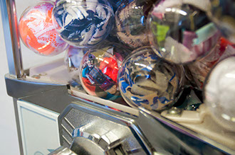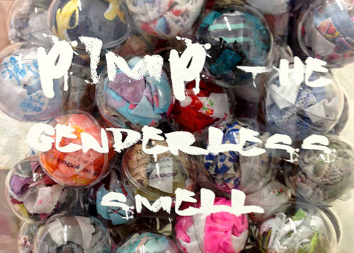 Pimp the genderless smell, acrylic balls | textile | machine, 65 x 10 x 10 in