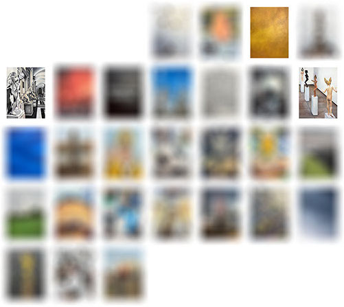 Diary paintings - February 2018, oil on wood, 64 x 73 in