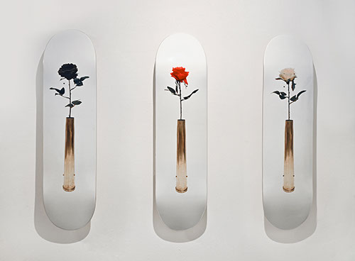 Rosebud, heat transfer on wood, edtion 3x3, 33 x 9 in